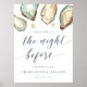 Planejar um janto de ensaio temático de ostras ou frutos do mar? Bem-vindos convidados com este símbolo de partido quic costeiro, com creme suave e ilustrações de ostra aqua aqua watercolor e pérolas com marinho azul. Perfeito para jantadas de ensaio de galinha na praia, verão ou náutica. Disponível para impressão e envio profissionais ou como download digital para impressão local.