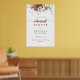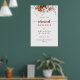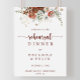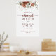 Este sinal de boas-vindas do janto de ensaio floral rústico de ouro é perfeito para um ensaio de casamento simples. O design apresenta marsala pintada à mão, cor-de-rosa, pinceladas, burgundy e flores douradas com folhas verdes dispostas em lindas coroas.