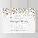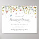 Este colorido sinal de boas-vindas do janto de ensaio horizontal é perfeito para um ensaio de casamento. O design apresenta uma aquarela pintada manualmente, lindas flores rosa, pincéis, azuis, marinhos, amarelas, roxas e verdes selvagens.