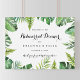Este sinal de boas-vindas do janto de ensaio tropical de destino é perfeito para um ensaio de casamento tropical. A design apresenta palma verde de cor d'água pintada à mão e folhas de bananeira bem organizadas em belos buquês.