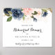 Este sinal de boas-vindas do janto de ensaio horizontal floral é perfeito para um ensaio de casamento moderno. O design apresenta belas flores azuis escuras, azuis, marinhos, rosa, pinceladas, douradas e folhagem verde pintadas manualmente, amontoadas em buquês elegantes.