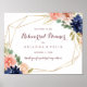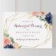 Este sinal de boas-vindas do janto de ensaio horizontal geométrico é perfeito para um ensaio de casamentos. O design apresenta uma aquarela desenhada à mão, púrpura, marinho, pincel, burgundy, flores marinhos, folhas verdes e douradas que adornam uma elegante moldura geométrica.