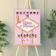 Sinal de Boas-vindas Bold e brilhante com fontes divertidas e uma vibração retrorreflectora moderna. Apresenta o Sinal de Boas-vindas de Las Vegas com cores cor rosada, laranja, vermelha e muito clara e cremosa branca. Perfeito para um casamento rápido ou uma festa de Vegas! Todos os textos podem ser alterados, exceto "bem-vindos e casamento". Mão desenhada por McBooboos. Este é configurado para um tamanho de 18x24 para o impressão e o seu compro de impressão local ou tem o Zazzle impressão para você. Para fazer mais mudanças, vá para Personalizar este modelo. Na parte inferior você verá "Quer personalizar este design ainda mais? Clique em EDIT usando a ferramenta Design. Será necessário algum aprendizado, mas você pode mudar algumas das fontes e algumas cores, mover as coisas ou excluir o que você precisa.