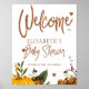 Chá de fraldas de sinal de boas-vindas ao outono moderno glamouroso, poster, de outono moderno, com flores arruinadas de laranja e burgundy, folhagem verde, coração e um estilo clássico, manuscrito e branco, estilo escovado de cobre, brilho caligráfico sobre fundo branco. ++++++++++ Fácil de personalizar com seu nome, data e local! ++++++++ Adequado para o glame floral moderno, o jardim ao ar livre no final do verão ou outono no quintal elegante festas de bebês ou raparigas.