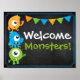 Celebre o primeiro ano do seu monstro com este tema super fofo! Tão feliz quanto seu filho! Com um fundo em forma de quadro-negro para um sentimento moderno.