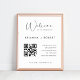 Bem-vindo aos seus convidados e encoraje-os a verem o seu programa de casamento com este poster elegante, com um roteiro elegante e texto personalizado e detalhes da sua escolha. Adicione facilmente seu próprio texto e código QR clicando na opção "personalizar".