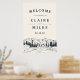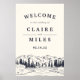 Bem-vindos convidados para o seu casamento rústico, florestal ou de montanha com a nossa poster do Sketch de Montanha, apresentando uma ilustração esboçada de picos de montanha, pinheiros, e um rio que flui. Adicione seus nomes, data de casamento e texto de boas-vindas personalizado usando os campos fornecidos.