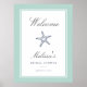 Sinal de boas-vindas de chá de panela personalizado projetado para corresponder aos nossos convites de Starfish de Casa e Marinho.