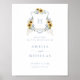 Sinal de Boas-Vindas de Girassóis Azul Dusty Hydrangea Crest Monograma. Sinal de Boas-vindas do Casamento Azul Dusty. Flores de Hydrangea Brancas Greenery Watercolor Poster