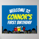 Personalize este sinal de boas-vindas para a sua festa de super-herói.