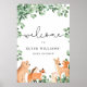 Este sinal de boas-vindas apresenta um design de animais de floresta macia e fontes modernas. O cabeçalho do script é uma imagem que não pode ser editada. Todo o outro texto é totalmente editável. Para personalização mais avançada deste design, basta selecionar o botão "Personalizar" acima.