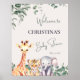 Faça seu chá de fraldas inesquecível com este bonitinho sinal de boas-vindas a chás de fraldas com tema safari. O design apresenta uma adorável girafa aquática, tigre e elefante, fazer-o na moda e charmoso. Use as ferramentas de design para personalizar o texto, a cor e as fontes.