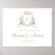 Sinal de boas-vindas dos Rosas Floral Blush Monogramas de repouso. Sinal de Boas-vindas do Dourado Script Wedding. Flores Brancas e Esbranquiçadas Poster de Crest de Casamento Verde