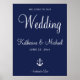 Bem-vindos convidados com charme náutico eterno! Nosso Sinal de Boas-vindas Náutico Azul contém marinhos elegantes e um design de âncora clássico, perfeito para casamentos costeiros, de praia ou de vela. Ponha o tom para seu dia especial com esta na moda e inesquecível primeira impressão.