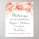 Bem-vindo ao poster de sinal de casamento com nome personalizado e data com padrão floral de cor-de-água rosa claro e cor-de-rosa.