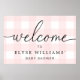 Esta placa de boas-vindas apresenta um design de gingham eterno com um título moderno de caligrafia. O sinal pode ser personalizado para se adequar a qualquer evento.