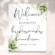 Este elegante sinal de boas-vindas para almoço de damas de honra com folhagens botânicas elegantes pode ser personalizado com suas informações em tipografia chic. Projetado por Thisisnotme©