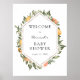Dê as boas-vindas aos seus convidados para o chá de bebê com este lindo cartaz, apresentando uma moldura dourada rodeada por clementinas, laranjas e folhagens. Adicione o nome da homenageada, data do chá e texto de boas-vindas personalizado usando os campos fornecidos.