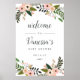Dê boas-vindas aos convidados para o chá de noiva ou chá de bebê com nosso pôster Peach Meadow, apresentando delicadas flores de pêssego e rosa bege e folhagens botânicas verdes, com "boas-vindas ao chá de noiva de [nome]" e a data do evento em uma mistura elegante de tipos de letra serif clássicos e caligrafia manuscrita.