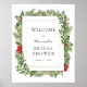 Dê as boas-vindas aos convidados para o seu chá de noiva com este lindo cartaz, apresentando uma moldura dourada rodeada por folhas perenes de inverno, poinsettias, frutos de azevinho e folhagens. Adicione o nome da convidada de honra, data do chá e texto de boas-vindas personalizado usando os campos fornecidos.