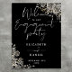 Este elegante sinal de boas-vindas para festa de compromisso com rosas florais góticas pode ser personalizado com suas informações em tipografia chic. Projetado por Thisisnotme©
