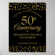 Com delicados corações dourados. Personalize com as informações do seu aniversário de ouro de cinquenta anos em letras douradas elegantes em um fundo preto. Criado por Thisisnotme©