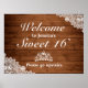 Doce sinal de boas-vindas do partido 16. Estilo russo com fundo de madeira e decor de renda branca. Há mais itens disponíveis neste estilo na nossa loja. Você pode editar a design, alterar cores, fontes e adicionar texto extra clicando no link "personalizar mais".