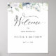 Elegante sinal de boas-vindas com elegante verde-aquarela e flores brancas e azuis. Belo detalhe da caligrafia escrita na mão moderna. 8" x10" é simplesmente o nosso tamanho predefinido, sinal disponível numa variedade de tamanhos. Capacidade de alterar campos de texto para usar o sinal em qualquer outro evento. Fácil de enquadrar ou, em alternativa, colar/grampear em MDF barato. Dimensões do sinal na foto de demonstração com o suporte: 28" x 20" Parte da nossa coleção "Elegant Bliss" com uma variedade de convites coordenadores, inserções de cartões, cartões rsvp, acessórios de correio, salvamento de datas, cartões de agradecimento e sinais e produtos de eventos.