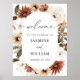 Bem-vindos aos seus convidados ao seu casamento ou evento com facilidade com o seu boho Rustic Neutral Boho Floral poster. Mão pintada com terra firme natural e neutra, champanhe, branco, pêssegos, florais de bege e verde. Excelente para casamentos e festas.