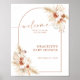 Esta adorável Poster de Boas-vindas personalizável apresenta um design minimalista com um esquema de cores sujas e desérticas - perfeito para um evento saturado em tons neutros e é uma bela maneira de acolher calorosamente seus convidados para seu chá de fraldas, chá de panela, casamento ou evento especial. Edite facilmente a maioria dos textos para corresponder ao seu evento! As cores de texto e arco são totalmente editáveis —> clique no botão "Personalizar mais" para editar!