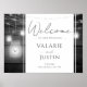 Wood Rustic Boho com Jar Lights Sinal de Boas-vindas. A fonte do script é realçada com a fonte de nome de serif de leitura fácil. Fácil de ajustar para as suas necessidades de casamento. Sinal de boas-vindas para cerimônias, festas de janto ou outros eventos de casamento. Precisa mudar todo o texto para outro evento? Este modelo fácil de usar pode ser ajustado para qualquer uma das necessidades do seu partido. Basta apagar e adicionar seu próprio texto.