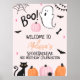 Meninas Rosa Boo Halloween Aniversário Sinal de Boas-vindas Sinal de Boas-vindas Lindas Aquarelas modernas Sinal de boas-vindas de aniversário de Halloween, rosa, laranja e preto. Este design apresenta vários itens bonitos de aquarela do Dia das Bruxas em um fundo rosa pálido. Uma maneira doce de cumprimentar convidados para a festa de aniversário de outubro do Dia das Bruxas da sua garotinha. A palavra spooktacular é uma imagem que pode ser excluída.
