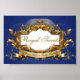 Chá de fraldas dos Sweets Reais e Tratamentos Reais Sinal com quadro ouro elegante sobre um fundo azul real. ©2021 Designs do Partido Sassy