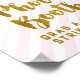 Cartaz de sinal de cabine de fotos para chá de bebê, chá de noiva ou casamento em tom pastel claro rosa e padrão de listras brancas com confetes dourados e letras em estilo manuscrito. Perfeito para um chá de bebê, casamento ou chá de noiva.