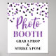 Cartaz de cabine de fotos para chá de bebê, chá de noiva ou casamento em um padrão de confete roxo e preto com letras em estilo manuscrito. Perfeito para um chá de bebê, casamento ou chá de noiva.