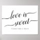 Esta elegante e nítida placa de caligrafia negra "o amor é doce" é perfeita para um simples casamento ou chá de panela. A linha de texto na parte inferior da placa pode ser personalizada com a data, os nomes da noiva e do noivo, ou uma mensagem curta como "Obrigado". Este sinal pode ser usado para um casamento ou qualquer evento ou festa.