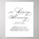 Este sinal de caligrafia moderna elegante em memória amorosa é perfeito para um casamento rústico ou chá de noiva. O design simples e elegante apresenta tipografia de letra clássica e sofisticada em preto e branco.