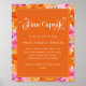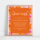 Crie um momento significativo com este vibrante sinal de cápsula do tempo de chuvaveiro, apresentando arte floral cor-de-rosa e laranja alegre, tons cítricos quentes e tipografia moderna e elegante. Perfeito para uma atividade de chuvaveiro, celebração de verão para bebês ou festa floral alegre para bebês, este display emocionante convida os convidados a compartilhar desejos, memórias e esperanças futuras, combinando perfeitamente com um estilo de evento colorido, feminino e memorável.