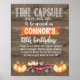 Caras Rustic Little Pumpkin Time Capsule Sinal Procurando por um slogan rústico de abóbora e cápsula do tempo do caminhão? Este design apresenta várias abóboras e um caminhão em uma imagem de fundo de madeira. Alguns textos não podem ser alterados. O mesmo cartão de cápsula de design está disponível na loja. Os cartões de cápsula do tempo são uma maneira fofa de gravar mensagens de amigos e familiares para o seu filho no seu primeiro aniversário.