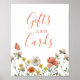 Sinal de presentes e cartões de aniversário do WildFlower. Chá de fraldas floral de aquarelas.