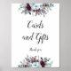 Poster Sinal de Cartão Floral Azul e Borgonha e presentes
