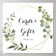 Este sinal de cartões e presentes tropical verde dourado geométrico é perfeito para um casamento simples ou chá de noiva. O design apresenta belas folhas verdes pintadas à mão, adornando uma moldura geométrica dourada. Torne a linha de texto na parte inferior do sinal sua, incluindo a data, os nomes da noiva e do noivo ou uma mensagem curta como "Obrigado". Este sinal pode complementar um casamento, qualquer evento ou festa.