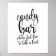 Um sinal de casamento elegante e moderno, apresenta o texto "Candy bar por favor, sinta-se à vontade para levar um doce" em uma fonte de letra manuscrita extrovertida, a textura da pincelada adiciona um sentimento espontâneo e divertido. A cor do fundo pode ser personalizada de acordo com suas necessidades e preferências, por favor entre em contato comigo se tiver algum pedido especial.