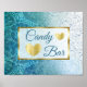 Sinal de Casamento Bar Chalkboard Veja com corações de ouro e fundo de mandala azul.