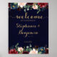 Póster Sinal de Casamento Burgundy Red Marinho Floral Rus