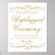 Sinal de casamento de cerimônia desplugada na caligrafia elegante de espiral de ouro. Excelente para muitas outras ocasiões como festas de noivado, chás de panela, chás de fraldas. A cor branca de fundo pode ser personalizada com a ferramenta online de opções de cor de fundo zazzle. Para um olhar coeso, visite minha loja para ver as coleções dos nossos números da mesa de casamento. Trabalho de arte projetado por Calani May.