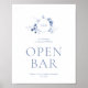 Poster Sinal de Casamento de Bar Aberto Floral Azul Dusty