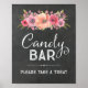 Cartaz de sinal de barra de doces para chá de bebê, chá de noiva ou casamento em padrão rústico de campo com aquarela floral e quadro de giz em tons de rosa e pêssego com texto em estilo de letra à mão. Perfeito para um chá de bebê, casamento, aniversário ou chá de noiva.