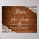 Sinal de Casamento Compartilhe o Amor. Estilo rústico com fundo de tábuas de madeira e decoração de renda branca. Mais itens estão disponíveis neste estilo em nossa loja. Você pode editar o design ainda mais, alterar cores, fontes e adicionar texto extra clicando no link "personalizar ainda mais".