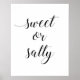 Este elegante cartaz de casamento tem o texto "doce ou salgado" em uma escrita em estilo caligráfico preto. Isto é parte da coleção Alejandra.